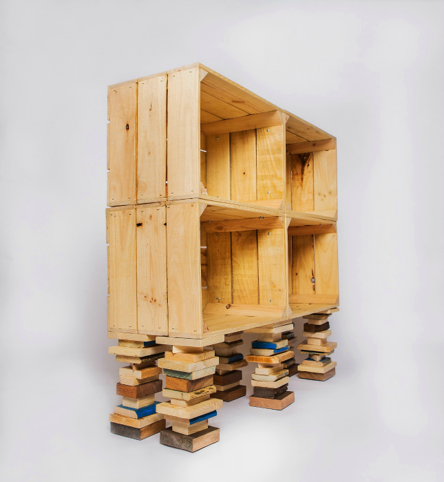 Оригинальный и вместительный стеллаж, сделанный из нескольких деревянных ящиков станет стильным и функциональным дополнением комнаты подростка или ребенка.