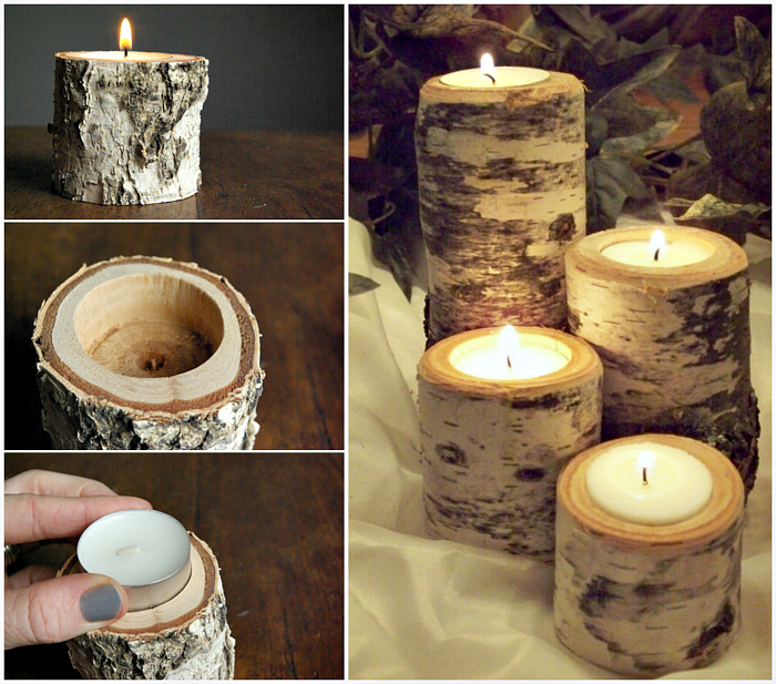 Небольшие деревянные спилы можно превратить в стильные подсвечники, которые станут очаровательными элементами домашнего декора.