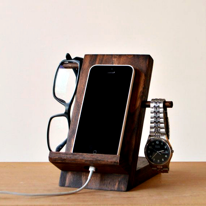 Компактный стильный и удобный органайзер с полочкой для мобильного телефона и двумя крючками, на которые можно повесить часы, очки и украшения.