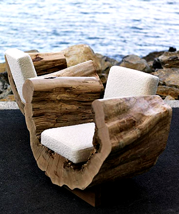 Уникальные, очаровательные и очень уютные кресла, сделанные из пней прекрасно впишутся, как в интерьер городской гостиной, так и в дизайн летнего патио или веранды загородного дома.