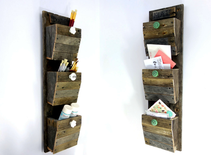 Оригинальный настенный органайзер из деревянных досок станет оригинальным украшением пустующей стены и подойдет для удобного хранения почты, ключей, телефонов, канцелярии, кистей и любых других мелочей.