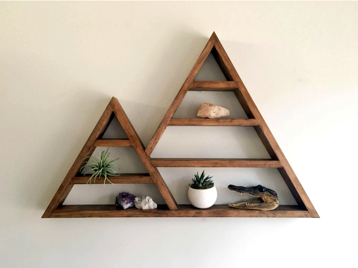 Очаровательные деревянные полки, похожие на горные вершины станут не только удобным местом для хранения книг и аксессуаров, но и стильным украшением стены.