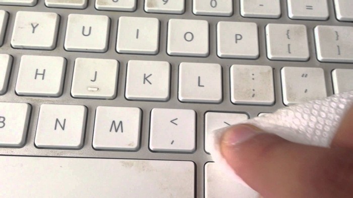 Если на белой технике появились желтоватые или серые пятна, которые не поддаются обычным салфеткам, используйте средство для снятия лака. Нанесите его на ватный диск или старую зубную щётку, легко потрите и оставьте на пару часов просохнуть. Также с помощью зубной щётки и средства с ацетоном можно основательно почистить клавиатуру и промежутки между кнопками от пятен и жира.