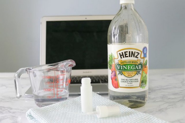 Смешайте уксус с водой в пропорции 50 на 50, обмокните ватный диск или любую мягкую ткань, обязательно отожмите и протрите технику. Если таким образом вы почистили ноутбук, ни в коем разе не закрывайте его сразу – оставьте сохнуть открытым хотя бы на пару часов.